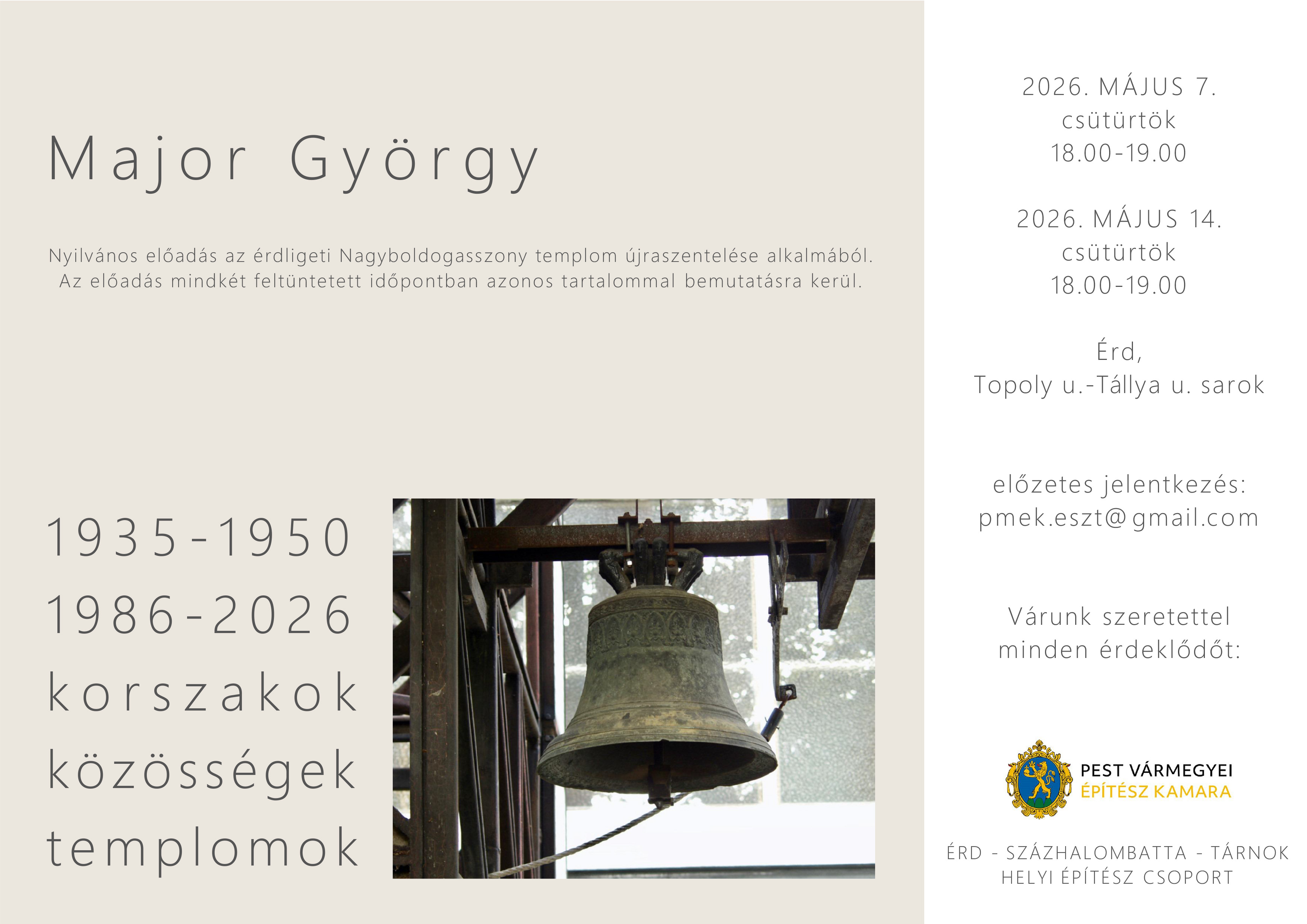 helyszín: Nagyboldogasszony Templom Érdliget