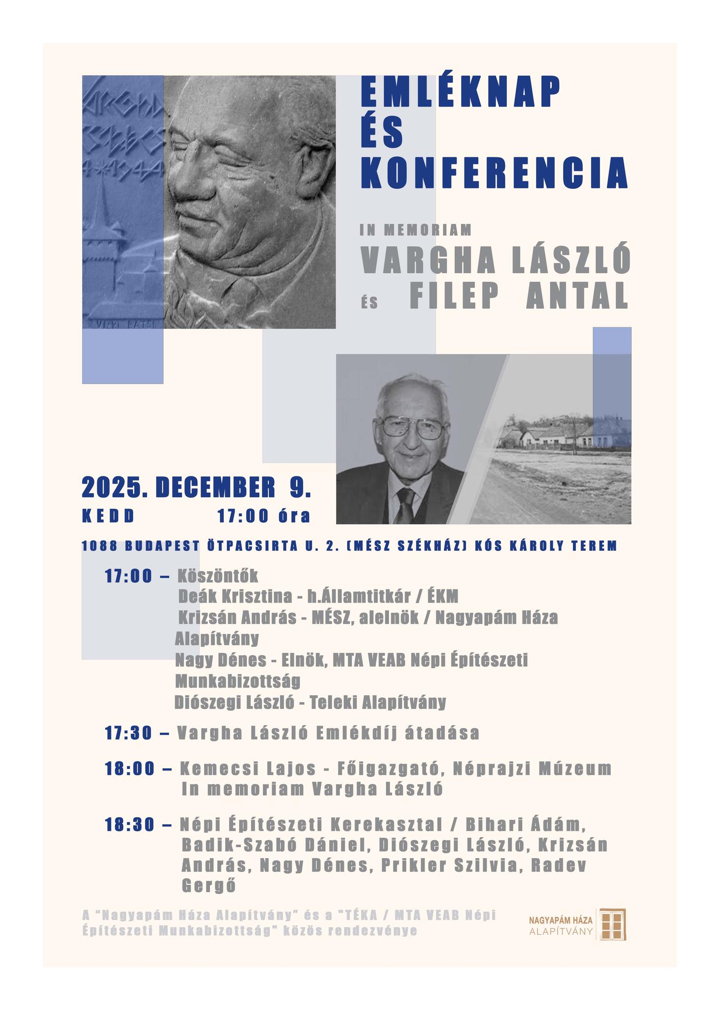 Minden érdeklődőt szeretettel vár a szervezők nevében a Nagyapám Háza Alapítvány és az MTA VEAB Népi Építészeti Munkabizottság.